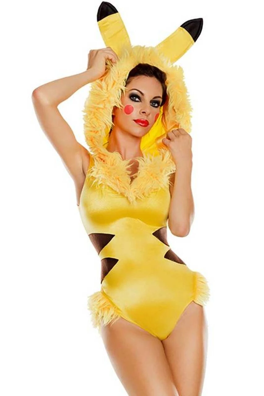 You gotta catch ’em all. This Collectible Anime’ Cutie costume includes a yellow bodysuit with faux fur trim, brown stripe sides, attached tail, attached faux fur hood with attached ears and faux fur leg warmers. Get that Pikachu look this Halloween